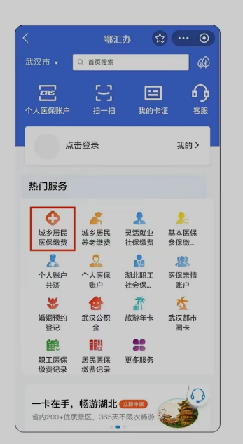 2、点击鄂汇办小程序,进入城乡居民医保缴费