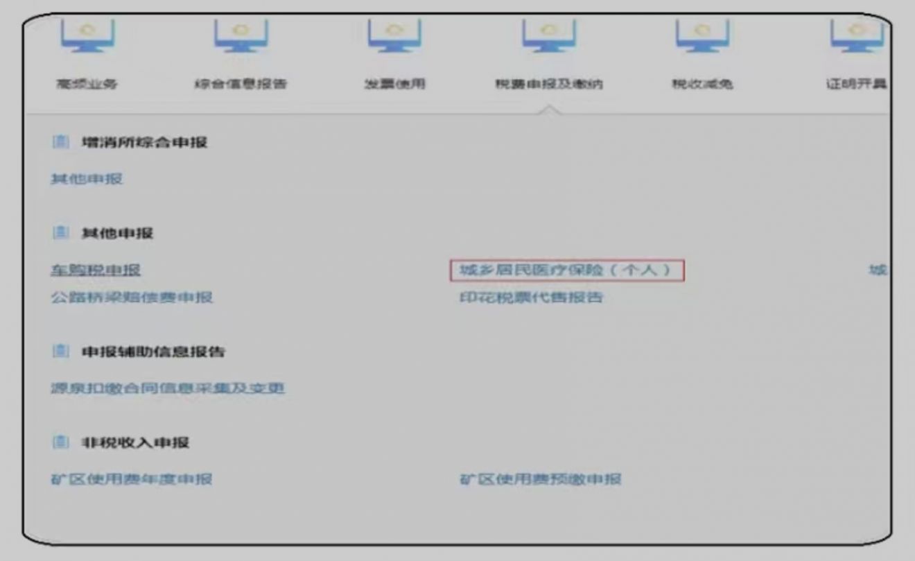 2、依次点击首页-办税中心税费申报及缴纳-城乡居民医疗保险 (个人)