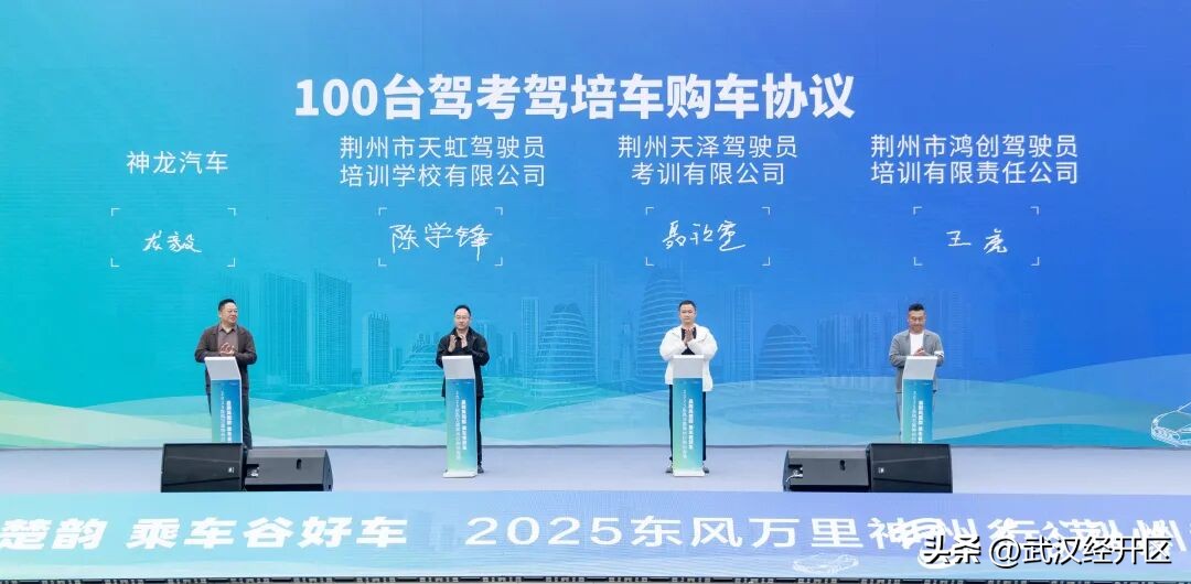 当天,神龙汽车与荆州市驾校签订100台驾考驾培车购车协议;东风汽车公司产业协作办公室与荆州市机关事务服务中心签订战略合作协议;东风汽车公司产业协作办公室与荆州市沙市区、洪湖市、松滋市三家东风汽车商城签订战略合作协议。