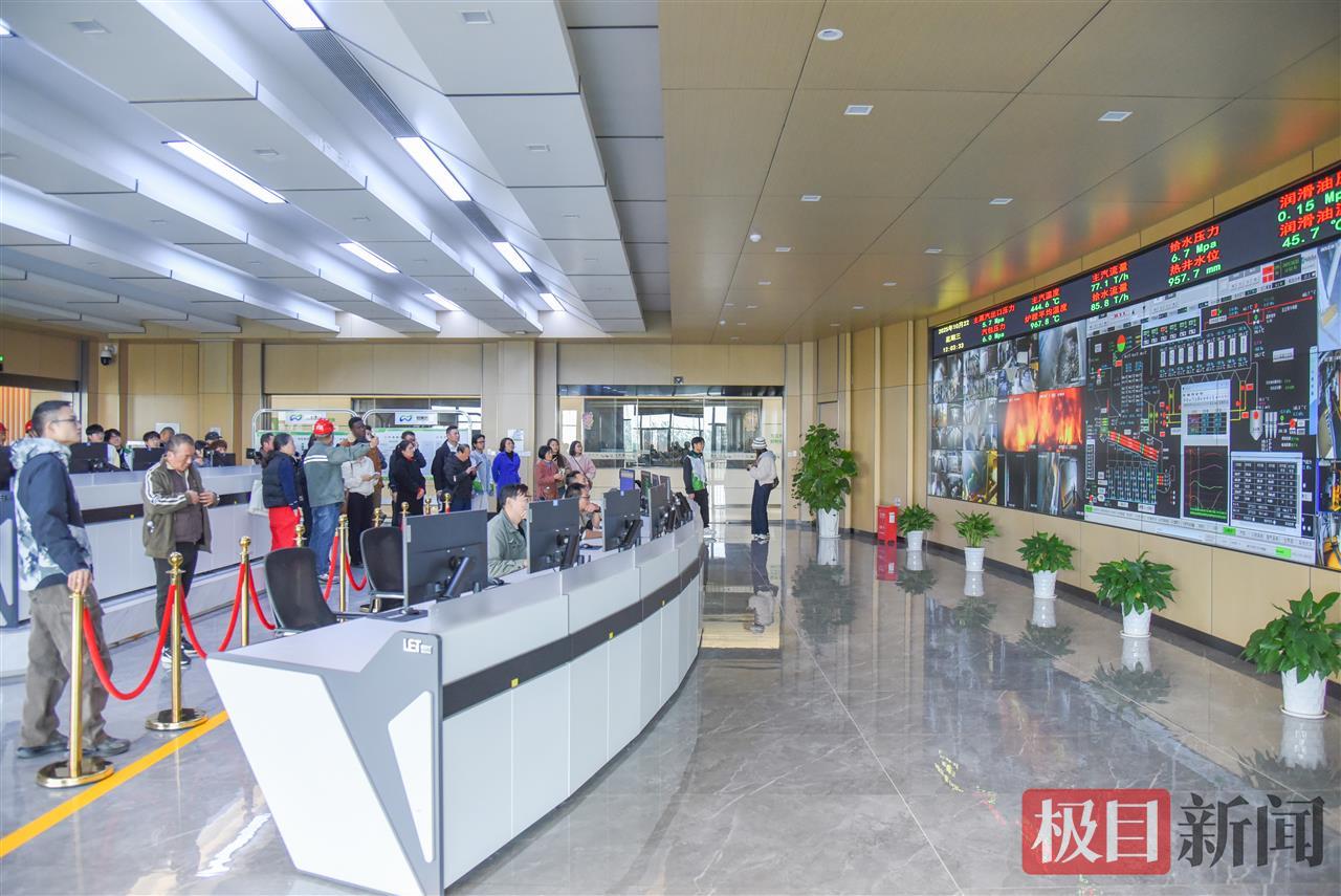 按照中控大屏展示的生产数据,该生活垃圾焚烧发电项目每小时发电量约2万千瓦时,一天可发电48万千瓦时,可供约10万户居民使用一年。